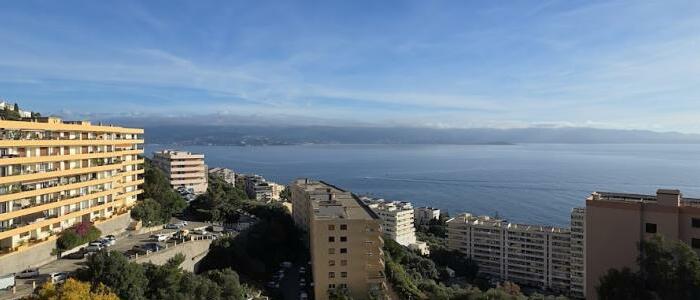 La Société de GESTION IMMOBILIERE a le plaisir de vous proposer en exclusivité au centre-ville d'Ajaccio dans le Parc Forcioli Conti au calme à 5 minutes à pied de la Place Diamant et du Cours Napoléon, un appartement traversant et lumineux de 132 m² situé au 10ème et dernier étage avec une exeptionnelle et panoramique vue sur la ville et la mer. l' appartement est composé d'un hall, un dégagement avec placard, un grand séjour clima